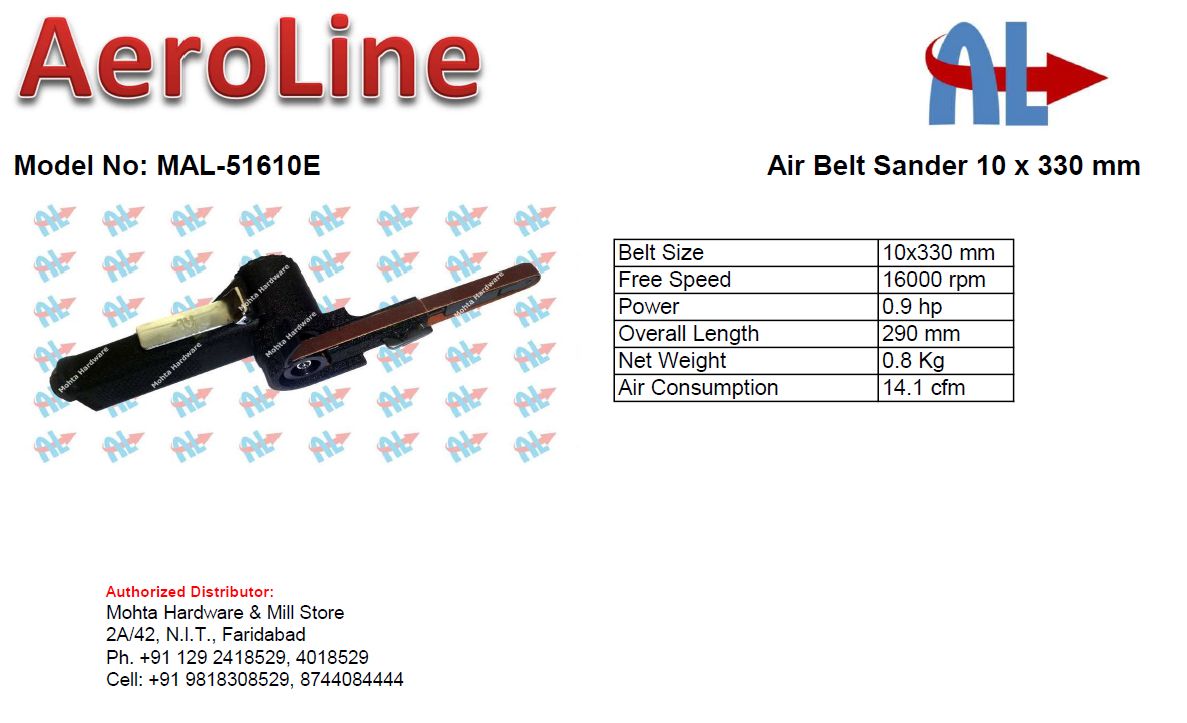 Pneumatic Belt Sander Distributor in India We are leading importer and distributor of Air Belt Sander in India. These are quality industrial grade tools for Grinding, Sanding, Deburring and finishing use. Available in standard size of 10 x 330 and 20 x 520 mm Visit us for more details or call us at 8744084444